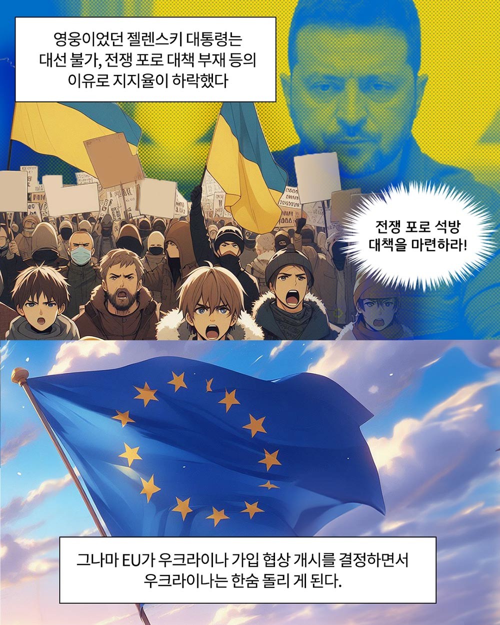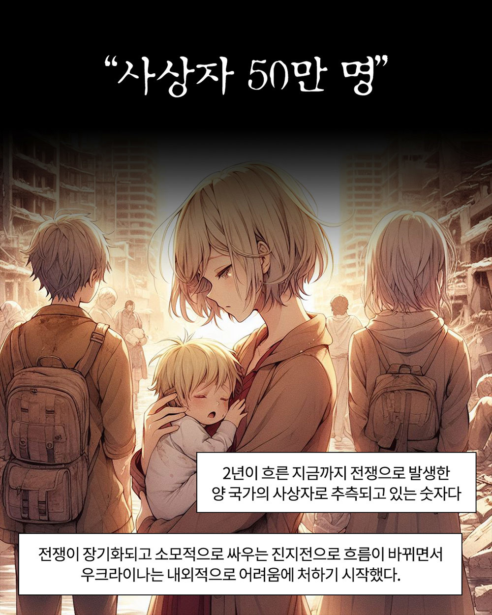 러- 우 전쟁 3년째... 젤렌스키 지지율 하락, 사상자만 50만 명 추측