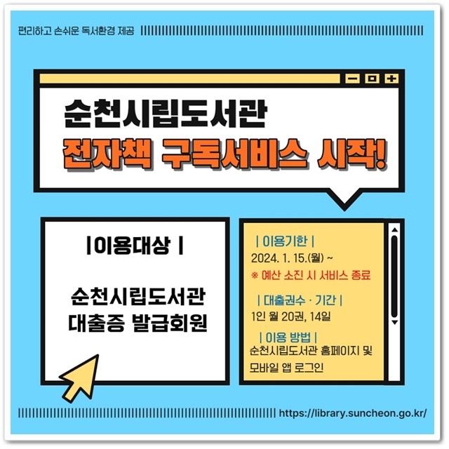 순천시립도서관, 1월 15일부터 '구독형 전자책 서비스' 시작