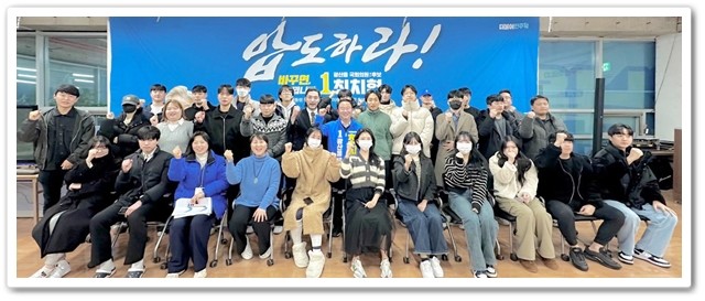 최치현 광주광역시 광산구(을) 더불어민주당 국회의원 예비후보가 지난 1월 17일 자신의 선거사무소인 파란캠프에서 ‘청년들에게 직접 듣는 정책’을 주제로 정책 제안, 청년정책 홍보 개선 등에 대해 의견을 주고받는 자리를 가졌다.