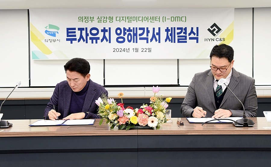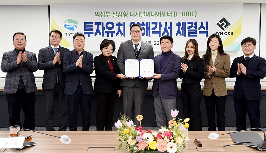 경기 의정부시(시장 김동근)는 22일 의정부 복합문화융합단지 도시개발구역에 ‘의정부 실감형 디지털미디어센터(I-DMC)’를 조성‧운영하고자 ㈜와이엔컬쳐앤스페이스(YN Culture and Space)와 투자유치 양해각서를 체결했다.