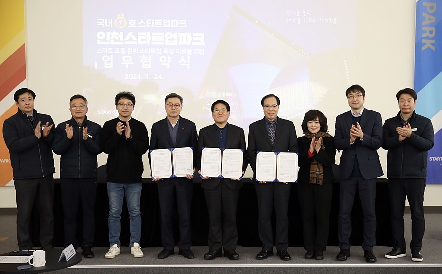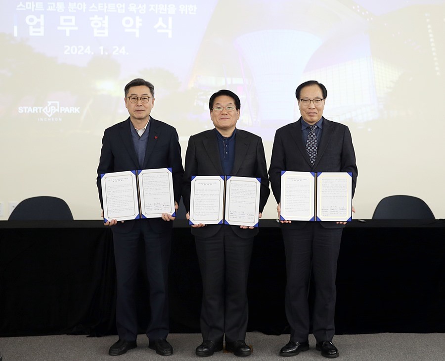 인천경제자유구역청은 24일 인천스타트업파크에서 인천교통공사, 인천테크노파크와 ‘스마트교통 분야 스타트업 육성 지원을 위한 상호업무협약’을 체결했다고 밝혔다.