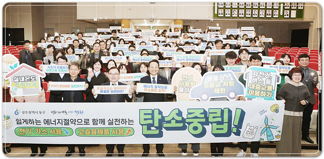 광주시 동구(청장 임택)는 4일 대회의실에서 임택 동구청장을 비롯한 전직원이 참여한 가운데 탄소중립 도시 실현을 위한 “공공기관 에너지절약 실천 캠페인”을 실시했다.