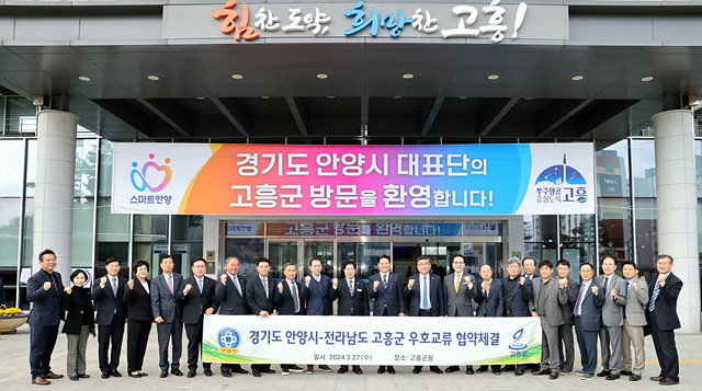 고흥군(군수 공영민)은 27일 군청 우주홀에서 경기도 안양시와 상생발전과 다각적인 상호협력을 추진하기 위해 우호교류 협약을 체결했다고 밝혔다.