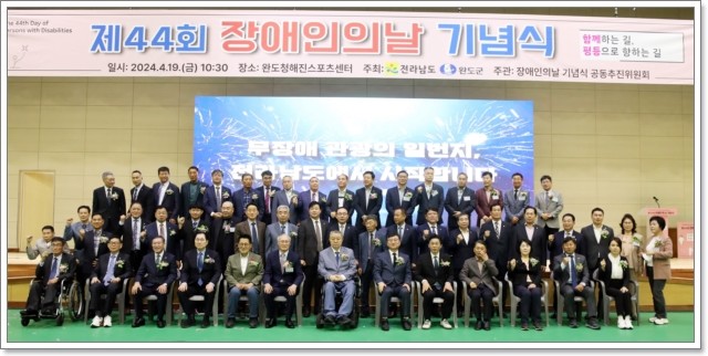 전라남도(도지사 김영록)는 19일 완도청해진스포츠센터에서 제44회 장애인의 날 기념식을 개최하고 장애인과 비장애인이 차별 없이 함께 사는 사회를 만들 것을 다짐했다.