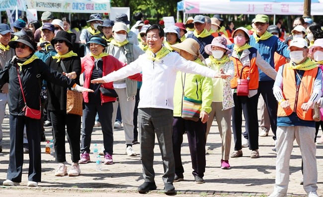 박병규 청장과 참석자들은 함께 치매 예방 체조를 하고, 바르게 걷기 교육을 받은 뒤 쌍암공원 일대를 걷는 시간을 가졌다.