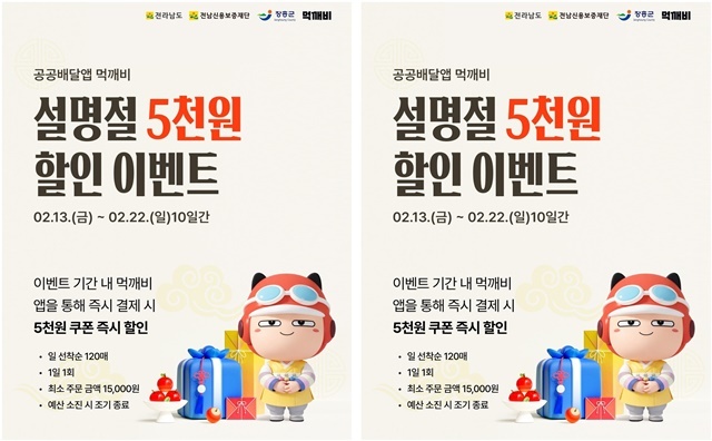 전남 공공배달앱 ‘먹깨비’에서 13일부터 지역사랑상품권 결제 시 5% 페이백 이벤트를 시작했다.