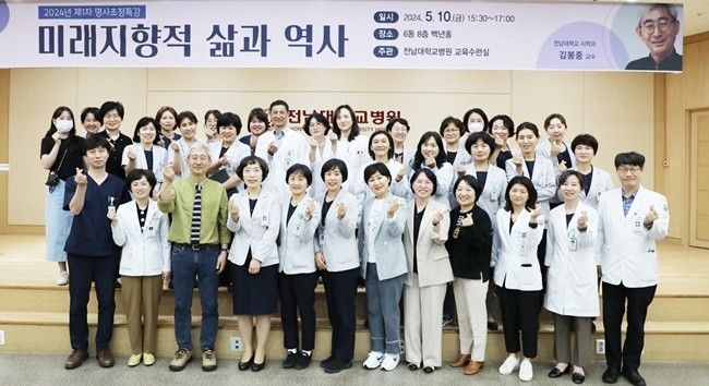 전남대학교병원(병원장 정 신)이 지난 10일 오후 3시30분부터 1시간 동안 6동 8층 백년홀에서 전남대학교 사학과 김봉중 교수를 초청해 ‘미래지향적 삶과 역사’를 주제로 명사초청 특강을 했다.