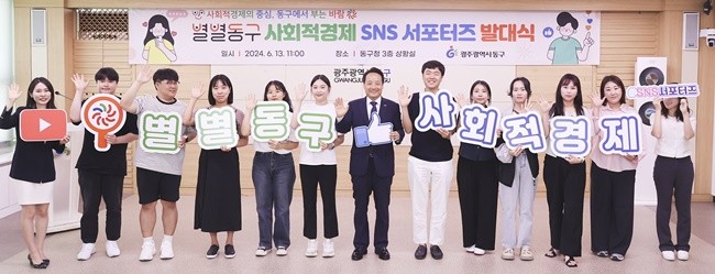 광주시 동구(청장 임택)는 13일 상황실에서 별별동구 사회적경제 SNS서포터즈 발대식을 개최했다. SNS 서포터즈들은 사회적경제의 사회공헌 활동, 모범사례 발굴, 기업브랜딩을 콘텐츠로 제작해 공식 SNS 채널을 통해 적극 홍보할 예정이다.