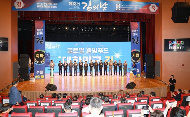 전남 완도군은 6월 13일 문화예술의전당에서 김의 우수성을 알리고 김 산업 종사자들의 노고를 격려하기 위한 ‘제13회 김의 날’ 기념행사가 성황리에 개최됐다고 밝혔다.