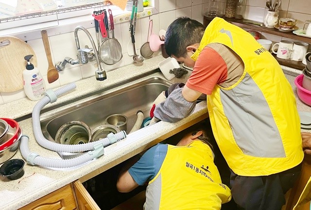 월곡1동 지사협 위원들은 이날 지역 내 혼자 사는 어르신 40세대를 방문, 오랫동안 청소하지 않아 음식물 찌꺼기가 쌓이고 곰팡이가 핀 싱크대 배수관을 직접 청소하고 배수관을 교체했다.