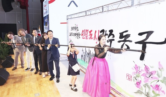 특히 임택 구청장은 주민 대표들과 함께 도시브랜드 ‘인문도시 광주 동구’를 붓으로 그려나가는 캘리그라피 퍼포먼스를 선보여 이목을 사로 잡았다.