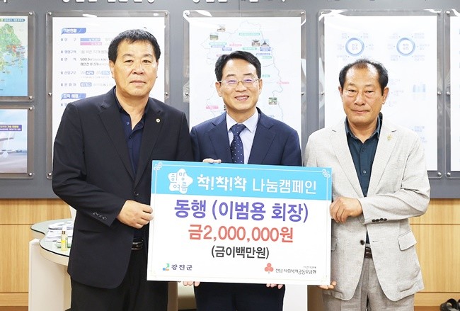 또한 동행(회장 이범용)에서는 강진군 어려운 이웃을 위해 사용하여 달라며 200만원을 지정 기탁했다.