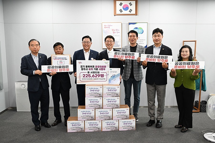 이날 강수현 시장은 김성중 경기도 행정1부지사에게 서명부를 직접 전달하며 “종합병원 부재 등 열악한 의료 인프라로 양주시민과 접경지역 주민의 공공의료원 유치에 대한 간절한 염원이 서명부에 담겨 있다”고 말했다.