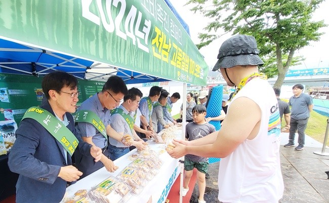 농협전남본부(본부장 박종탁)는 27일 쌀 소비촉진 및 우수한 전남쌀 홍보를 위해 정남진장흥 물축제장 특설부스에서“2024년 전남 10대 고품질 브랜드 쌀”홍보 행사를 실시했다.