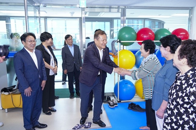 강기정 광주광역시장과 이상민 행정안전부 장관이 1일 오전 서구 화정동 국립국가폭력트라우마치유센터를 방문해 내부시설을 둘러보고 있다./광주광역시 제공