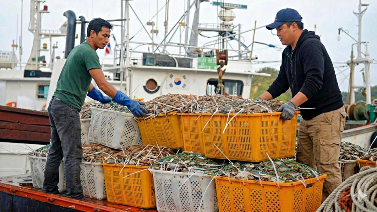 6. 꽃게 무게가 묵직한지 들어보고 판단한다.