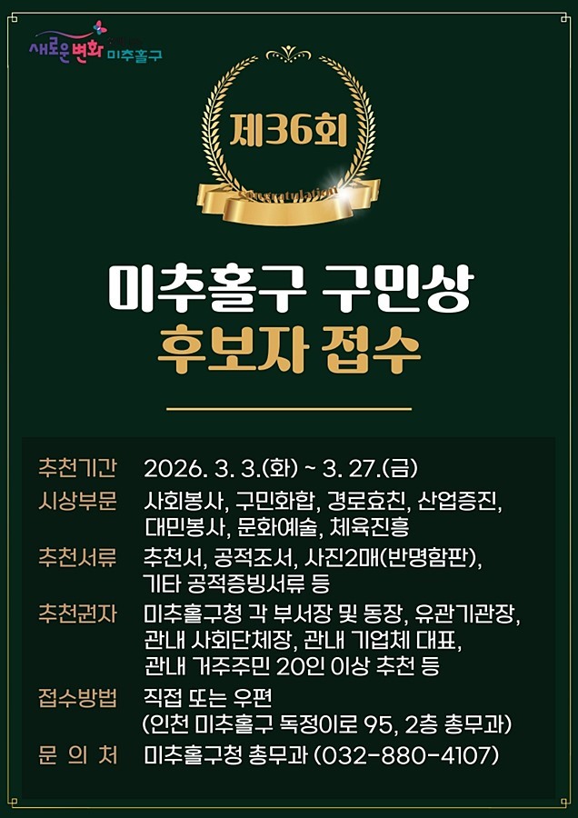 인천 미추홀구(구청장 이영훈)는 지난 7월 의뢰한 ‘미추홀구 신청사 건립 사업’이 행정안전부 중앙투자심사를 통과했다고 21일 밝혔다.